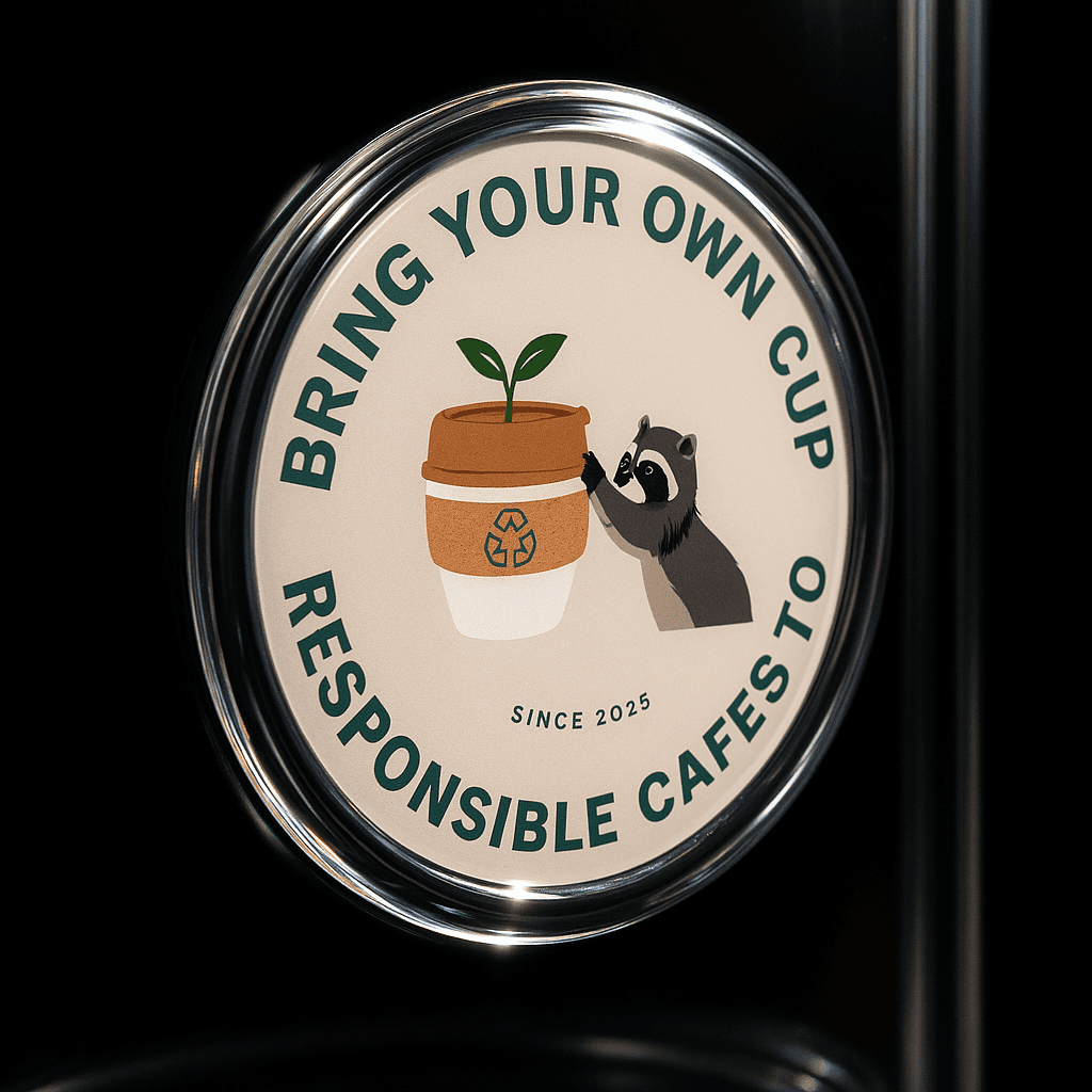 Partner cafés display our official sticker so customers instantly know they’re BYOC-friendly.